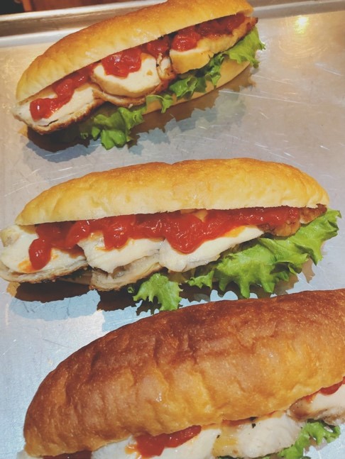 ハーブかおるローストチキンとオニオントマトソースコッペ